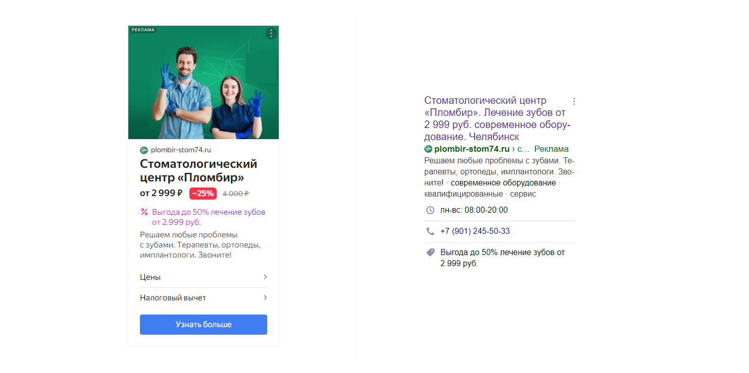 Ведь когда болит зуб, человек редко знает точный диагноз. Он просто ищет помощь стоматолога. Нам нужно было заметно мелькать в поиске, чтобы ловить как "теплых" клиентов, так и "горячих", которым срочно требовалась помощь.