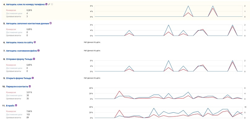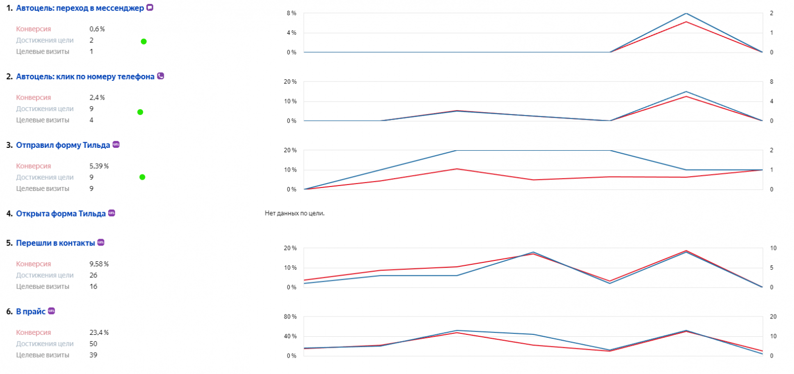 После создания сайта мы установили Яндекс.Метрику, чтобы отслеживать действия пользователей и определить ключевые цели рекламной кампании. Мы выбрали несколько основных целей, таких как отправка формы или совершение звонка. Дополнительные косвенные цели, такие как переходы к прайсу, контактам и открытие формы, помогли алгоритму быстрее обучаться и оптимизировать показ объявлений.