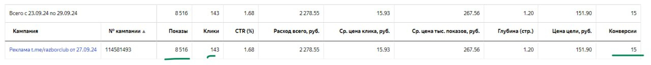 С 30.09.24 по 06.10.24 были следующие результаты: