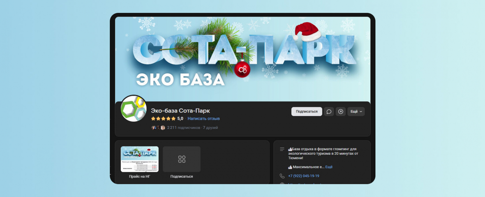 Недавно у нас была запущена таргетированная рекламная кампания во ВКонтакте для базы отдыха «Сота Парк». Этот канал продвижения был рекомендован нашим маркетологом в рамках общей стратегии, и его запуск планировался одним из первых этапов, с учетом подготовки группы ВКонтакте к зимним каникулам и необходимости разработки эффективной стратегии таргетинга.