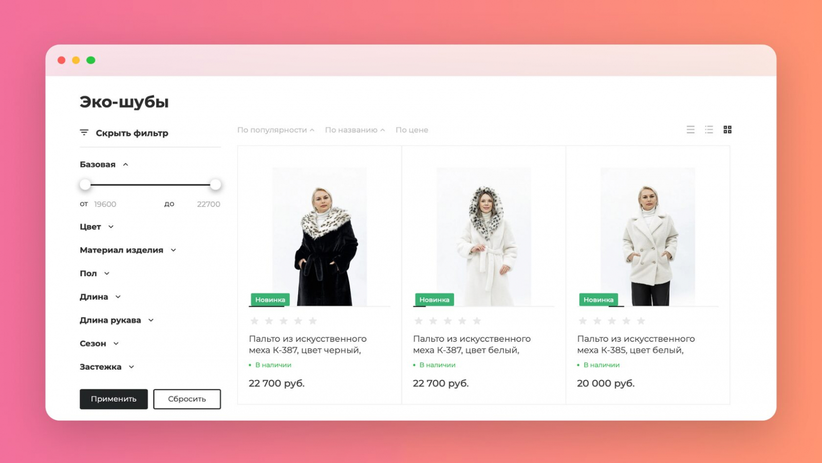На сайте был создан отдельный раздел, посвященный исключительно экошубам. Это соответствует растущему спросу на экологичную продукцию и позволяет пользователям легко находить интересующую их информацию.