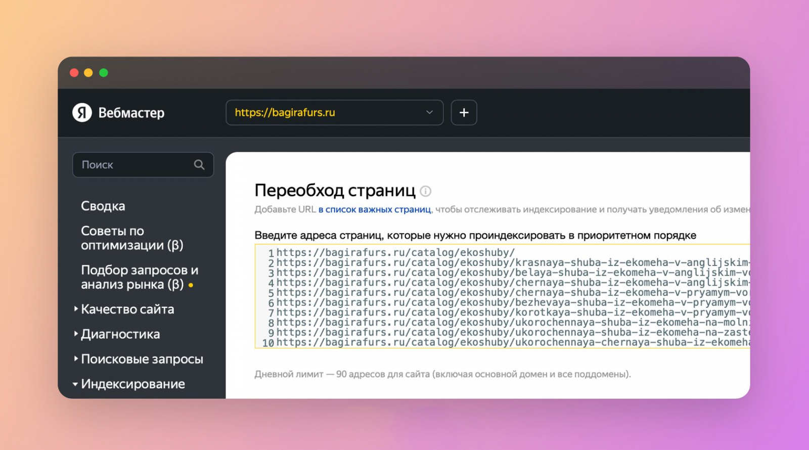После завершения всех технических работ мы запустили переобход сайта в Яндекс Вебмастер для ускорения индексации поисковой системой.