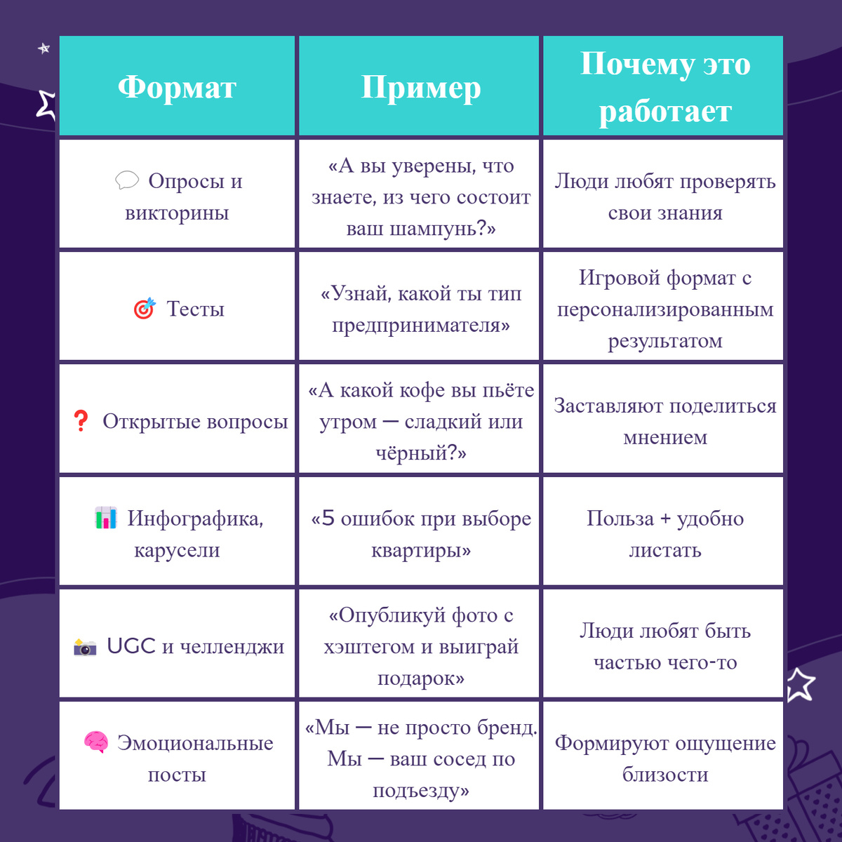 P.S. А какой формат вовлекающего контента нравится вам? Делитесь в комментариях — обсудим! 😉