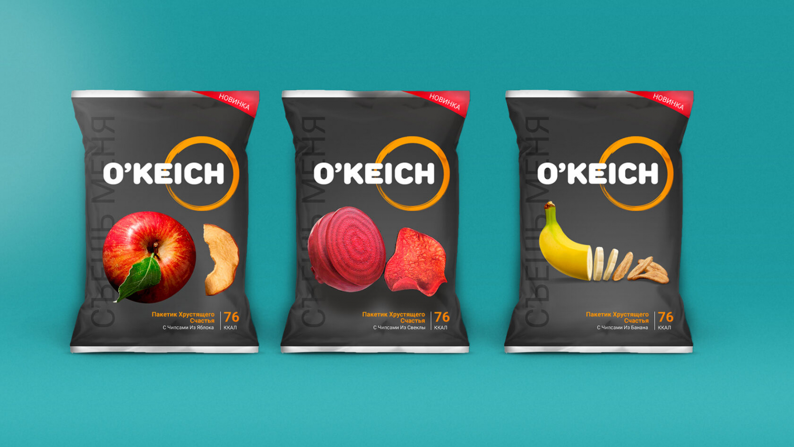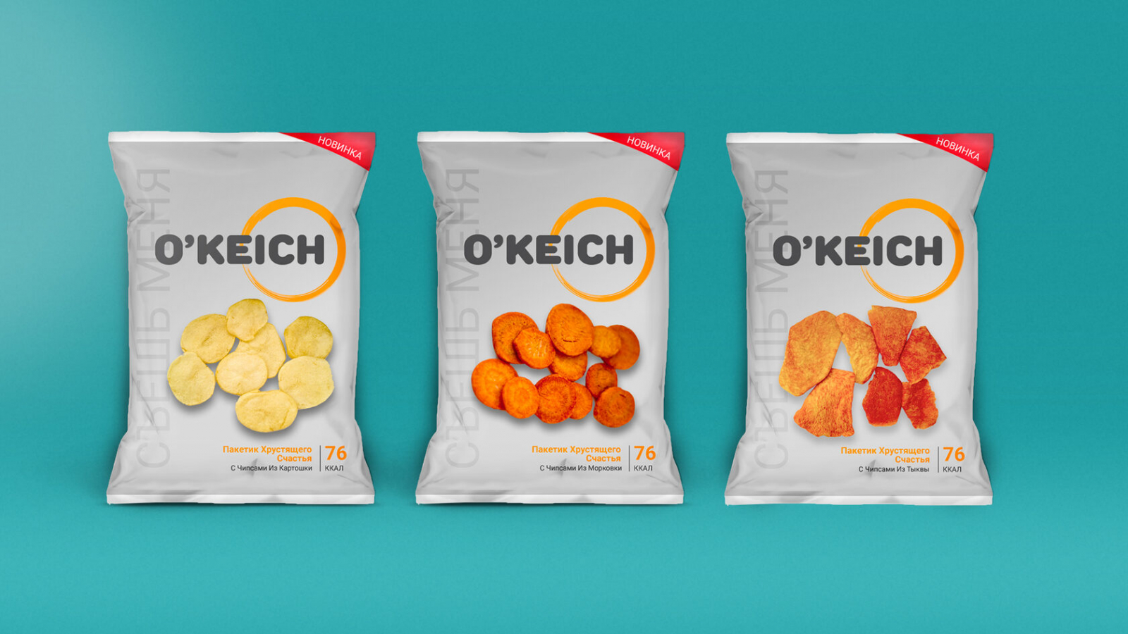 Бренд OKEICH, специализирующийся на производстве снеков, обратился в агентство с чёткой задачей: переработать дизайн упаковки линейки продукции. Цель — усилить визуальное присутствие на полке, повысить узнаваемость и стимулировать продажи в конкурентной FMCG-среде.