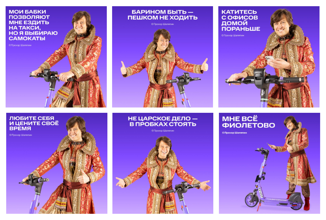 Прохор Шаляпин в образе «барина на самокате» стал неожиданным хитом осени. Контраст между аристократическим образом и утилитарным продуктом (рента самоката за 29 рублей) породил вирусный эффект: цитаты из ролика тут же превратились в мемы, а самокаты — в must-have.