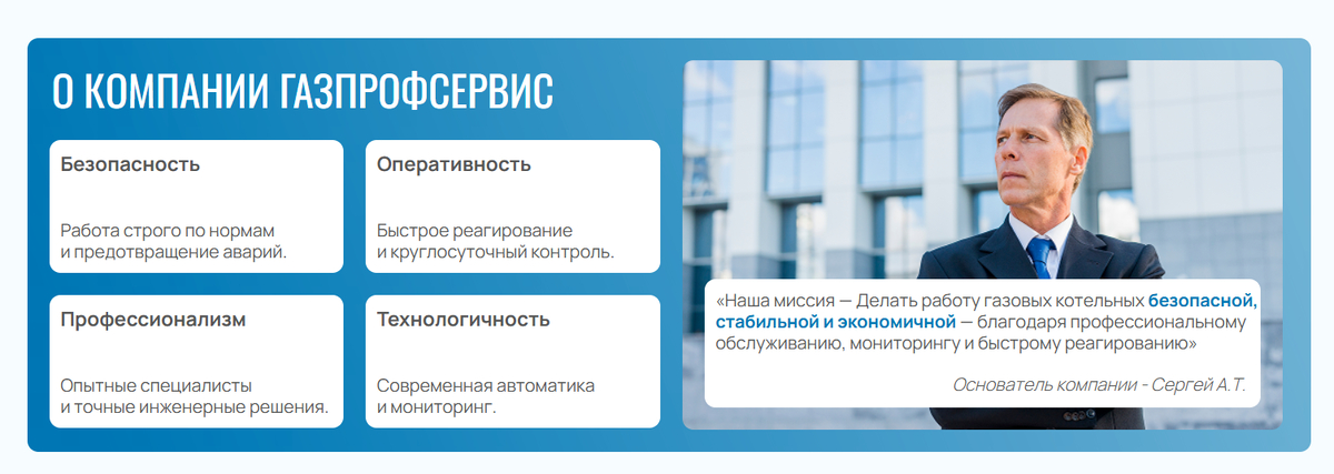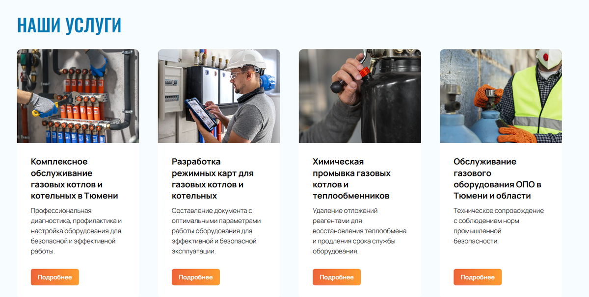 Иногда клиенты приходят без подробных вводных, но с чётким ощущением, каким должен быть результат. Так произошло и в этом проекте: задача звучала лаконично — нужен минималистичный сайт для презентации услуг по обслуживанию газовых котлов.