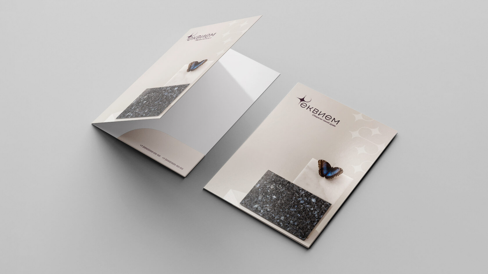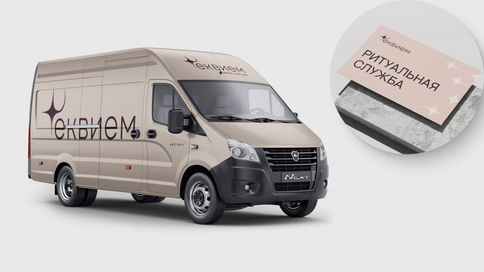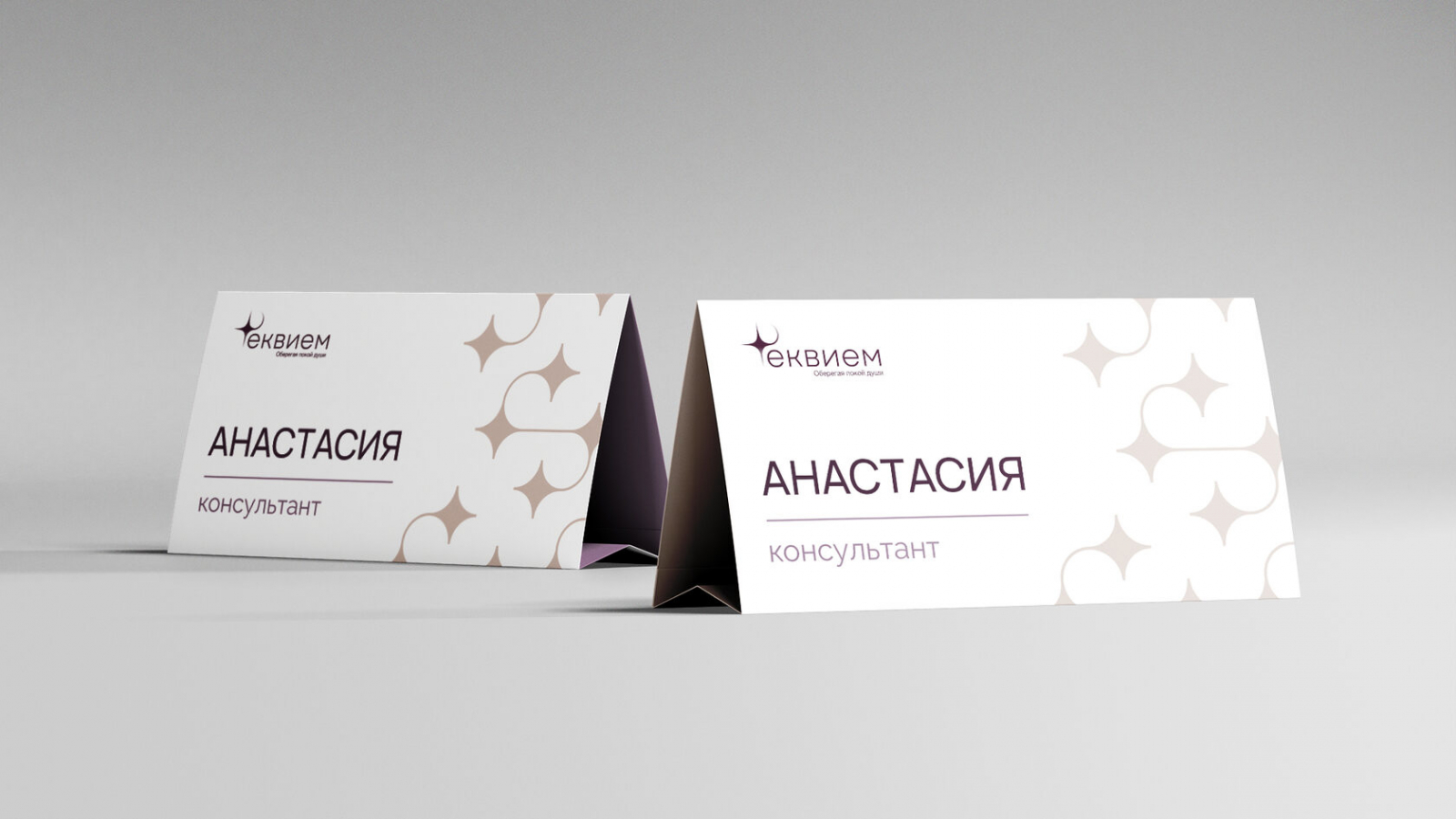 Ритуальная служба Реквием — постоянный клиент агентства. У компании уже был логотип и базовые цвета. Но не было единой системы: папки для встреч, авто службы, мерч для сотрудников — всё разное, без общей стилистики.