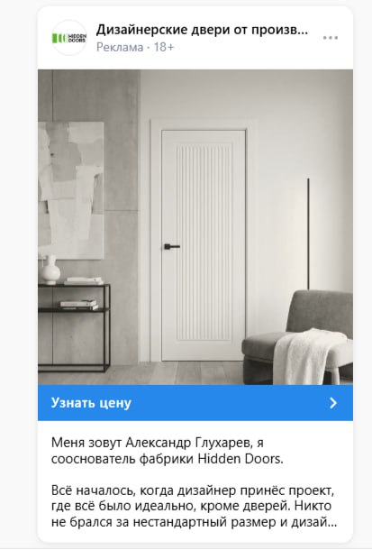 Для производственного B2C это критично. Человек, который ищет двери скрытого монтажа в новостройку, и человек, который присматривает дизайнерские двери для ремонта — это разные сегменты с разной мотивацией, разными возражениями и разным циклом принятия решения. Показывать им одно и то же объявление — значит терять конверсию на каждом этапе воронки.