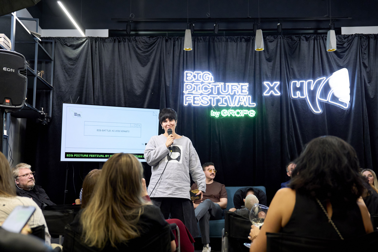 Гости дискутировали на тему создания креативных роликов командой профессионалов или с помощью нейронок, в результате мнения разделились: нейронки хороши для определенных задач, как, например, создание роликов артистов, это более кост-эффективный процесс. При этом, нейросеть не в состоянии создать качественный креатив для гастрономической категории. Паблик-ток завершился небольшой вечеринкой с диджейским сетом от Даши Яструбицкой.