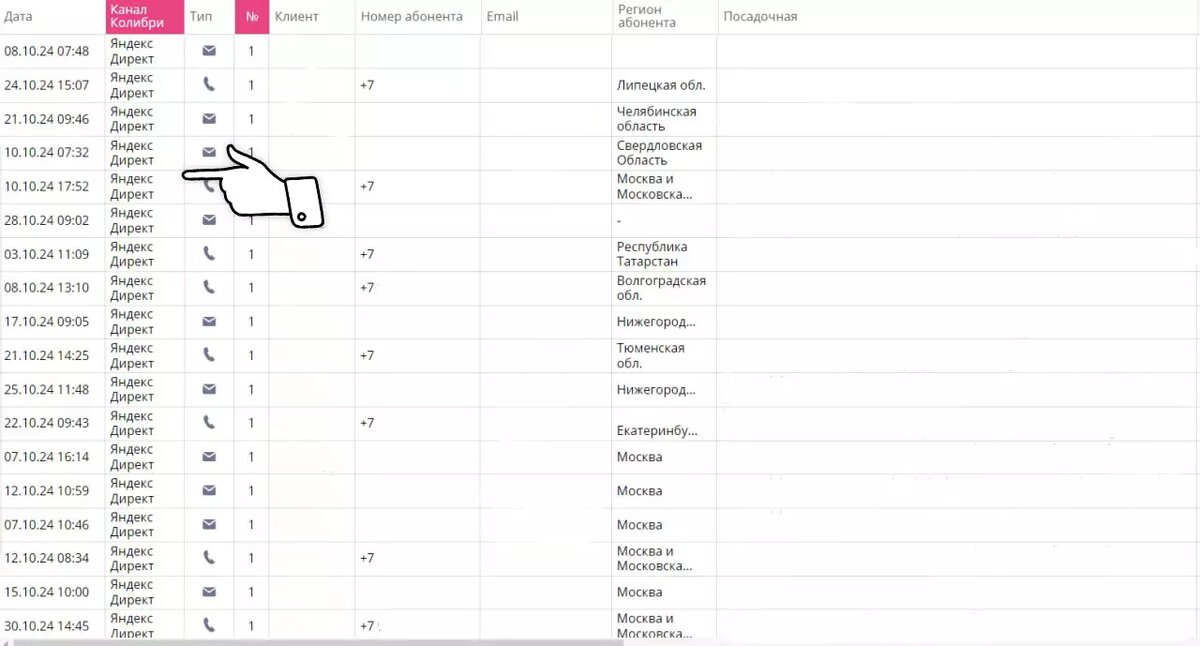 В первый месяц было трудно отследить все касания, поэтому не можем назвать период самым позитивный. Узнали, что лиды поступают в основном по телефону и на почту, где их обрабатывает оператор и передает менеджеру по региону.