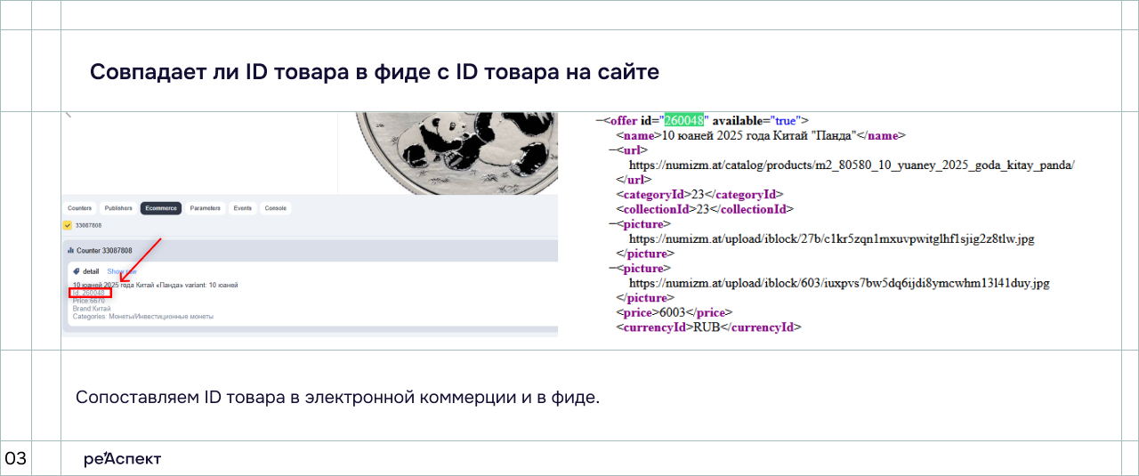 Ошибки в <price>, <url> или <picture> снижают кликабельность и конверсии. Несоответствие ID товаров между фидом и данными электронной коммерции в Яндекс Метрике нарушает офферный ретаргетинг. Пользователи могут видеть не те товары или не получать повторные предложения.