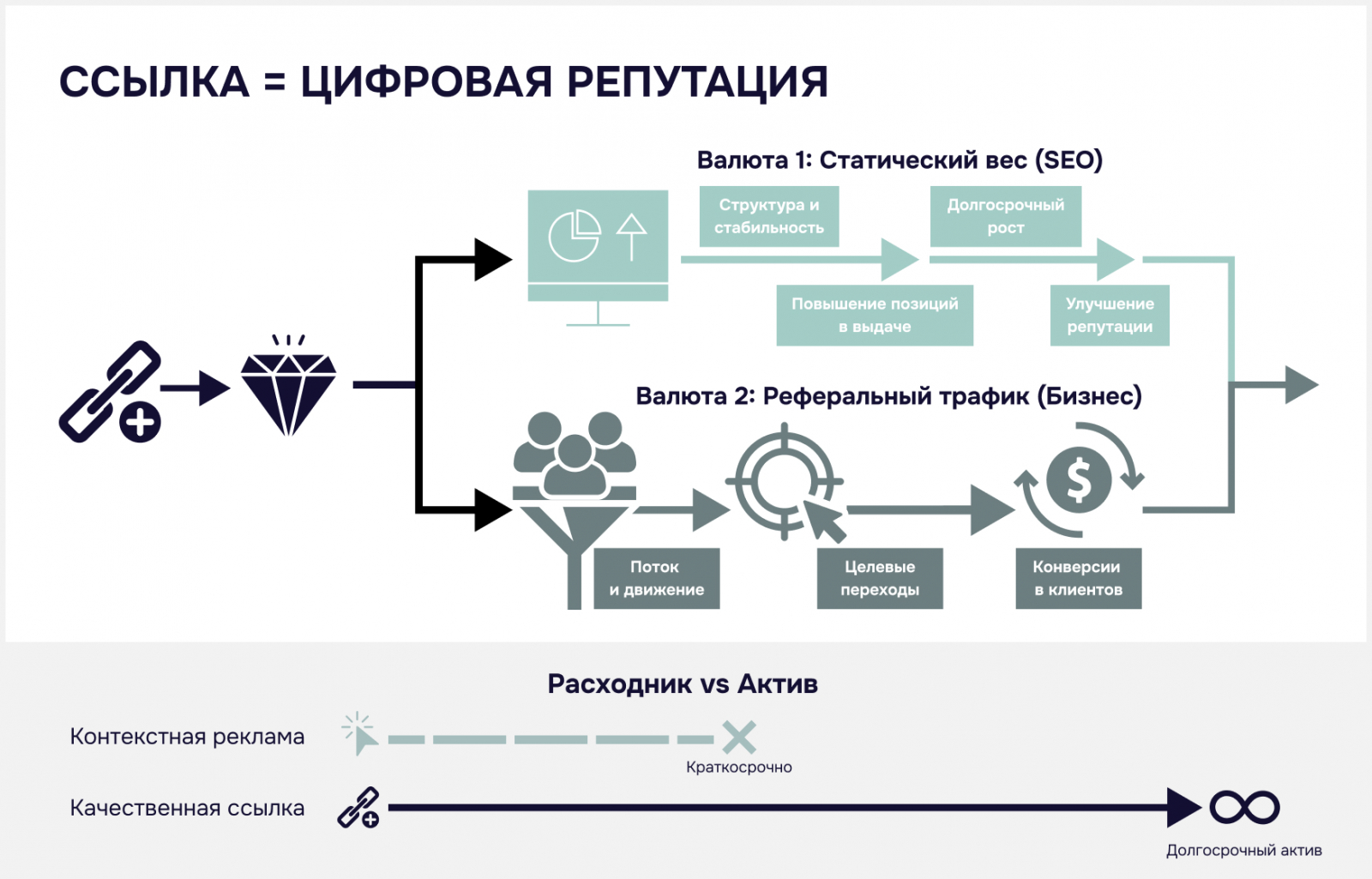 В грамотной стратегии ссылка становится активом, который приносит две валюты: