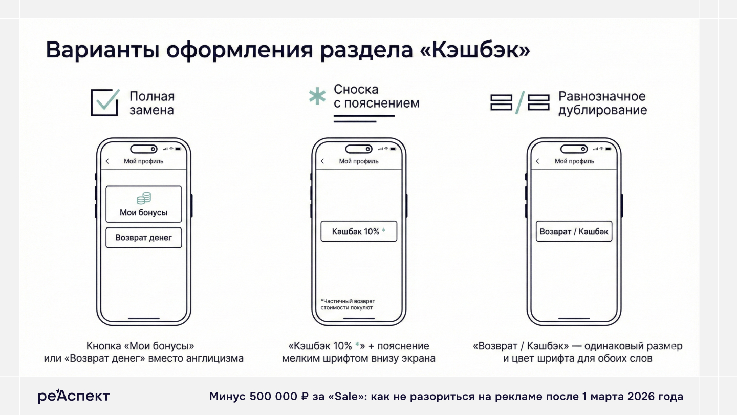 Пример: оформление раздела «Кэшбэк в приложении» по новым правилам. В интерфейсе мобильных приложений часто встречается англицизм «Кэшбэк», которого нет в государственном русском языке. Вариантов адаптации несколько: