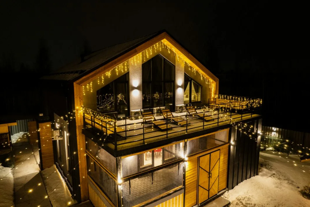 Первым хотелось бы выделить Villingston Residence. Это место мгновенно покорило меня. Представьте себе большой дом премиум уровня со всеми удобствами: дровяная купель, костровая зона, зона барбекю, где поместится большая компания, СПА, хамам, сауна, русская баня, караоке, Play Station, кальян. Там можно закатить вечеринку на большую компанию или уютно провести время паре, либо в кругу семьи. Внутри всё устроено с максимальным комфортом: просторные комнаты, современная кухня и огромная терраса, где приятно проводить время с чашкой кофе или бокалом вина.