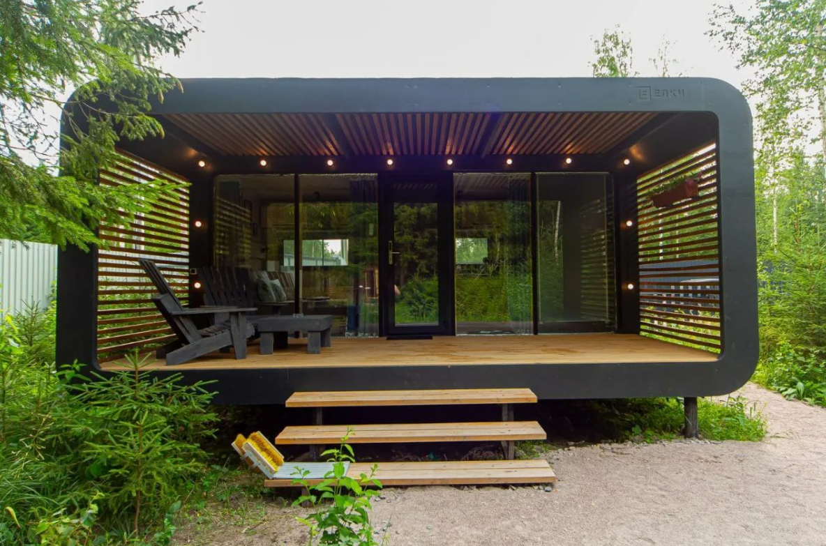 Каждый дом предназначен для комфортного проживания до 4 человек и имеет приватную территорию с мангальной зоной и мебелью на террасе.