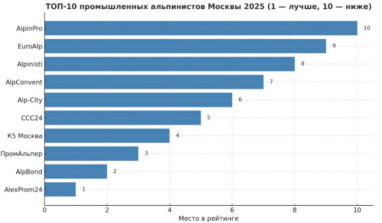 Промышленный альпинизм в Москве в 2025 году стал зрелой и конкурентной отраслью. Компании, вошедшие в ТОП-10, охватывают широкий спектр задач – от высотных работ до комплексного обслуживания объектов. При выборе подрядчика в сфере промышленного альпинизма стоит учитывать опыт, лицензии, допуски, отзывы, команду рабочих и прозрачность информации. Это особенно важно, когда речь идет о сложных технических задачах, где каждая ошибка может привести к серьезным последствиям. Профессиональный подход и ответственность – основа качественного промышленного альпинизма. Сегодня альпинизм – это не просто работа на высоте, а полноценная инженерная услуга с высоким уровнем стандартизации и контроля. Я бы выделил 2 явных фаворита в этой отрасли https://alexprom24.ru/ и https://alpbond.org/, но по ряду факторов предпочтение отдам первым, так как пользовался услугами обоих компаний.