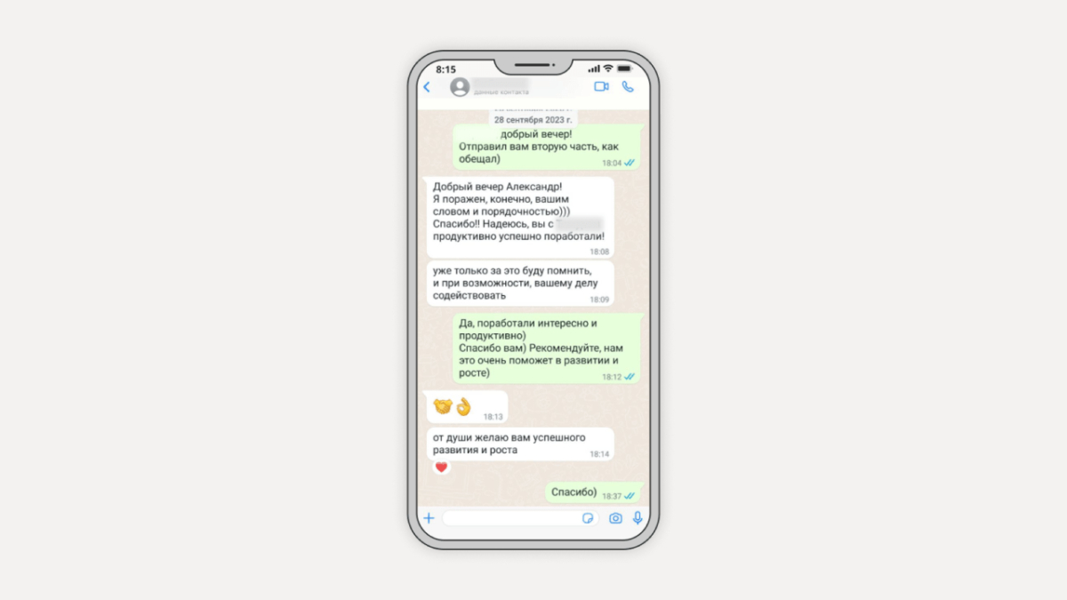 После выполнения контракта мы перечисли оставшуюся часть. Мы считаем, что именно такие теплые слова партнеров и клиентов являются показателем качества работы.