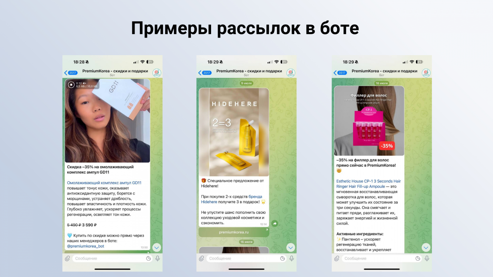 Дополнительно в боте организовали регулярные рассылки с акционными предложениями, поступлениями новинок и т.д. на 6 000 человек, которые пришли с сайта и запустили бота.