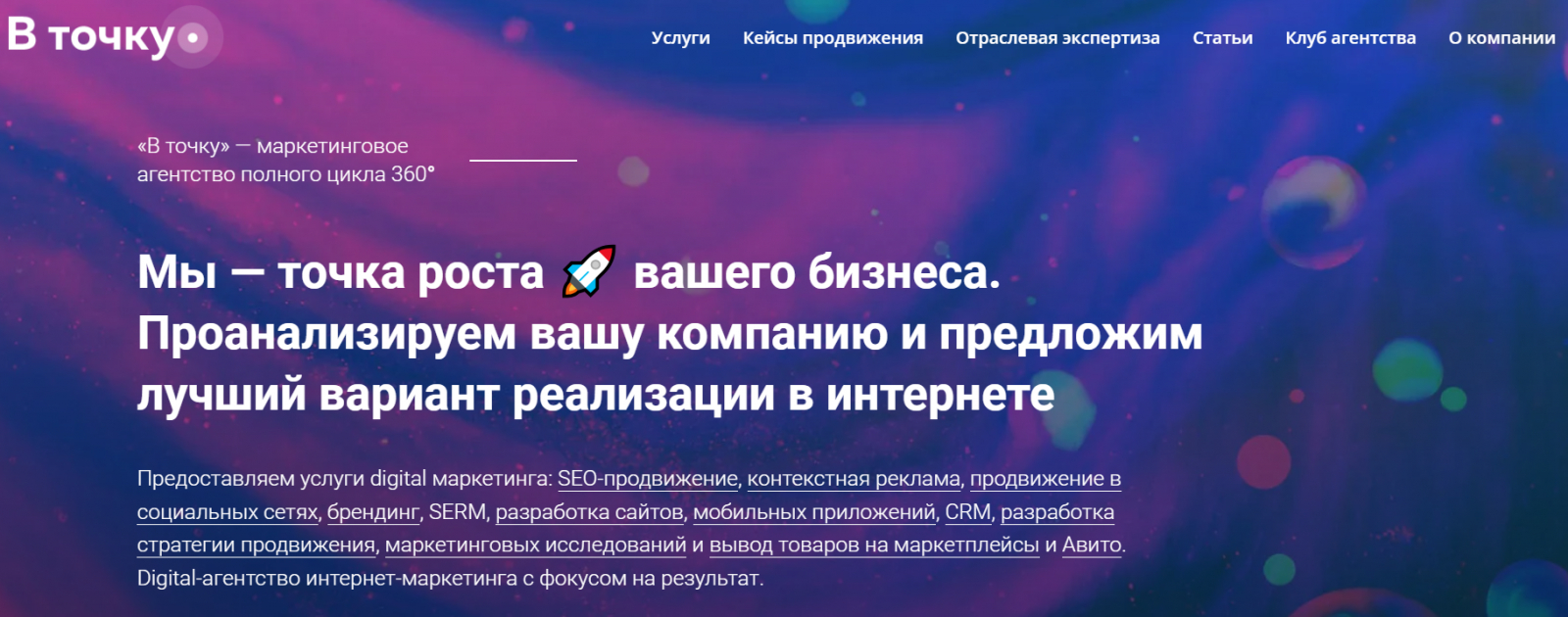Услуги агентства “В точку”: