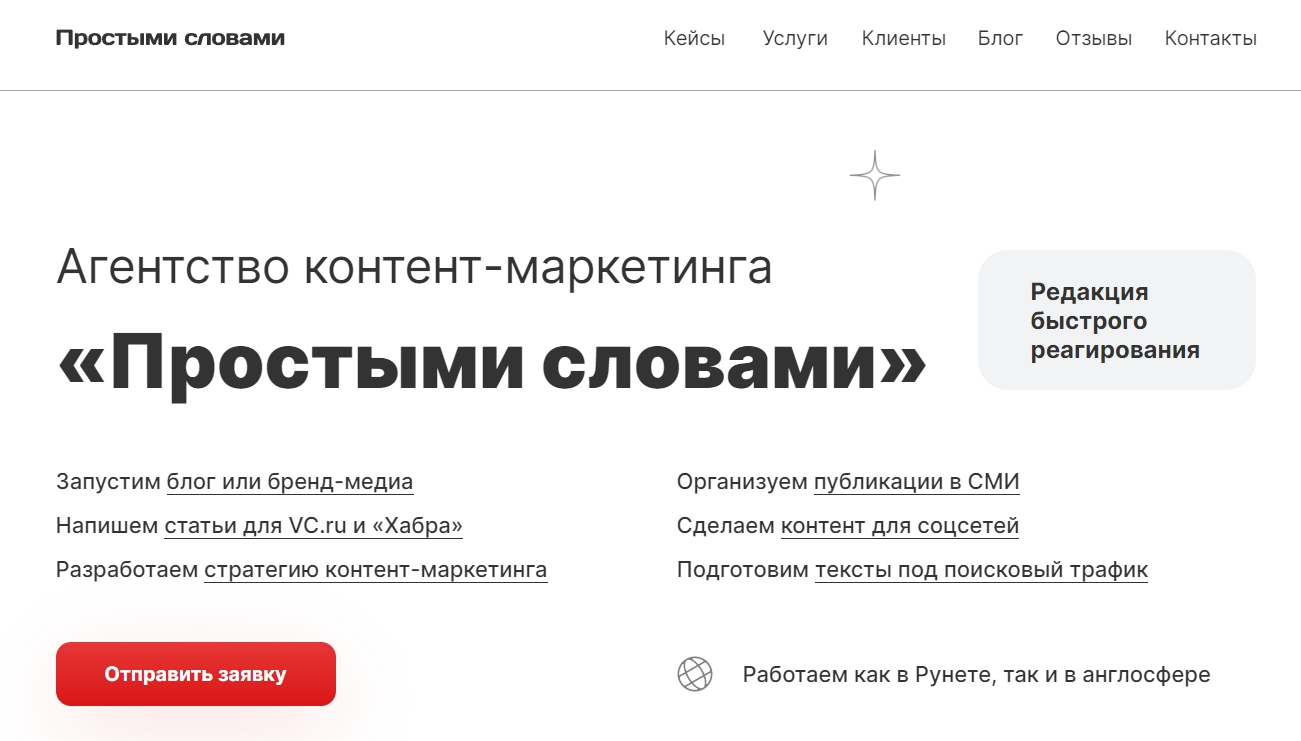 Услуги агентства “Простыми словами”: