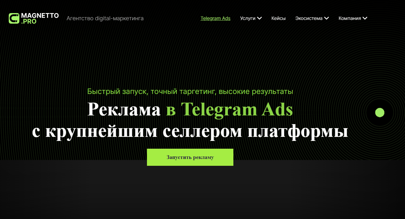 Агентство занимается исключительно Telegram Ads: подбор каналов, создание креативов, тестирование, модерация, запуск, сратегия, анализ результатов