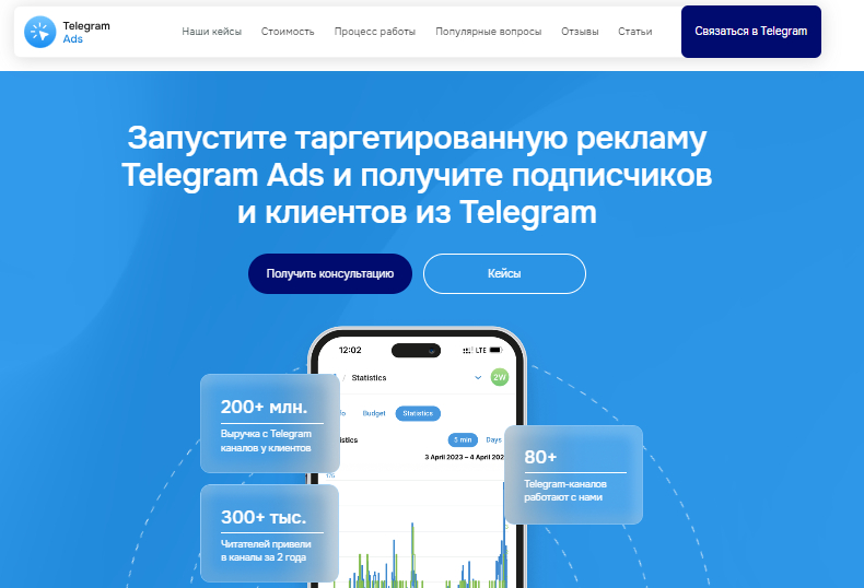 На сайте кейсы по социальным сетям вообще и понять, где там Telegram Ads, мне не удалось.