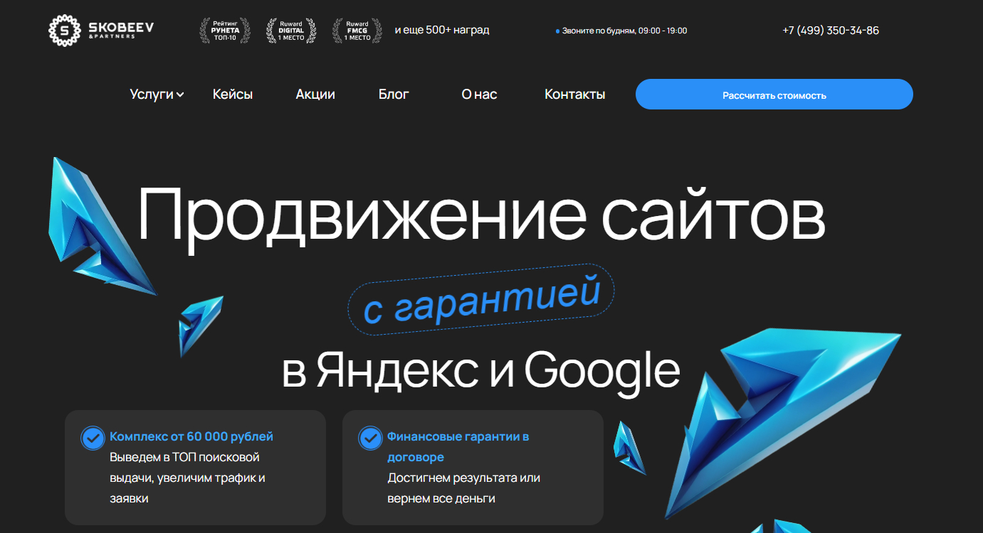 Агентство “Скобеев и Партнеры” специализируется на SEO продвижении и заявляет более 2800 реализованных по всему миру проектов. Своими кейсами, инструментами и лайфхаками для маркетологов компания делится в Telegram-канале Skobeeff Digital. Также на сайте можно найти блог для владельцев бизнеса и digital-специалистов, а на YouTube — короткие образовательные ролики.