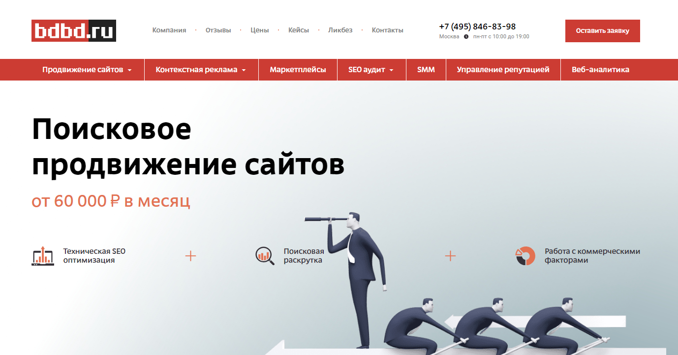 Агентство BDBD занимается SEO, работает уже 23 года и заявляет более 2000 кейсов в разных сферах бизнеса. Компания зародилась в Mail.ru, где в 2000 году работали генеральным продюсером вертикальных сервисов и директором по медиапланированию основатели BroaDBanD Group — Михаил Зуев и Павел Маурус. На сайте можно найти статьи по интернет-маркетингу и подробные чек-листы, инструкции, советы по продвижению, SMM, контекстной рекламе и многое другое.