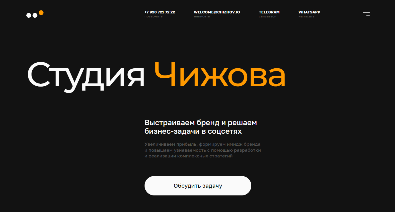 Агентство “Студия Чижова” фокусируется на SMM и заявляет в портфолио более 380 проектов в 25 разных нишах. Присутствует в рейтингах Tagline, Ruward, Workspace. За подписку на рассылку дарят whitepaper с исследованиями, трендами и стратегиями для бизнеса на 2024 год. На своем сайте ведут блог о маркетинге.