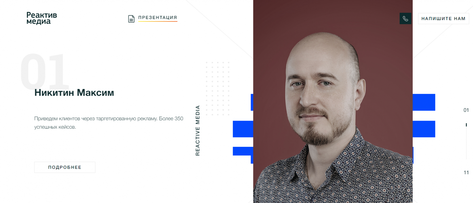 “Реактив Медиа” — агентство комплексного digital-маркетинга с экспертизой в SMM. На рынке РФ с 2011 года и являются членами Торгово-промышленной палаты с 2013 года. За время своей работы реализовали более 300 кейсов. Ведут свой блог, Telegram-канал и выступают на различных конференциях в сфере маркетинга.