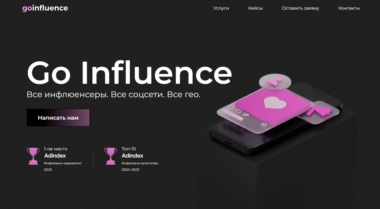 В 2018 году в агентстве мобильного маркетинга Go Mobile появился юнит по работе с инфлюенсерами — Go Influence. С 2021 года Go Influence в самостоятельном плавании. Агентство работает с Likee, VK, YouTube, Telegram, Instagram, TikTok, “Дзеном”, Twitch и Pinterest.