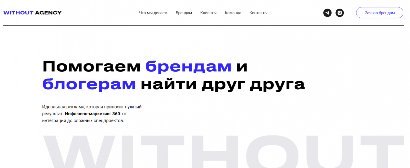 Агентство инфлюэнс-маркетинга полного цикла, работающее около восьми лет. Участник ассоциаций российских digital-агентств ARDA и Digital Club. Блога на сайте вы не найдете, но есть странице в запрещенной сети, где публикуют ссылки на свои статьи в медиа, вакансии, обновления и делятся моментами из жизни агентства.