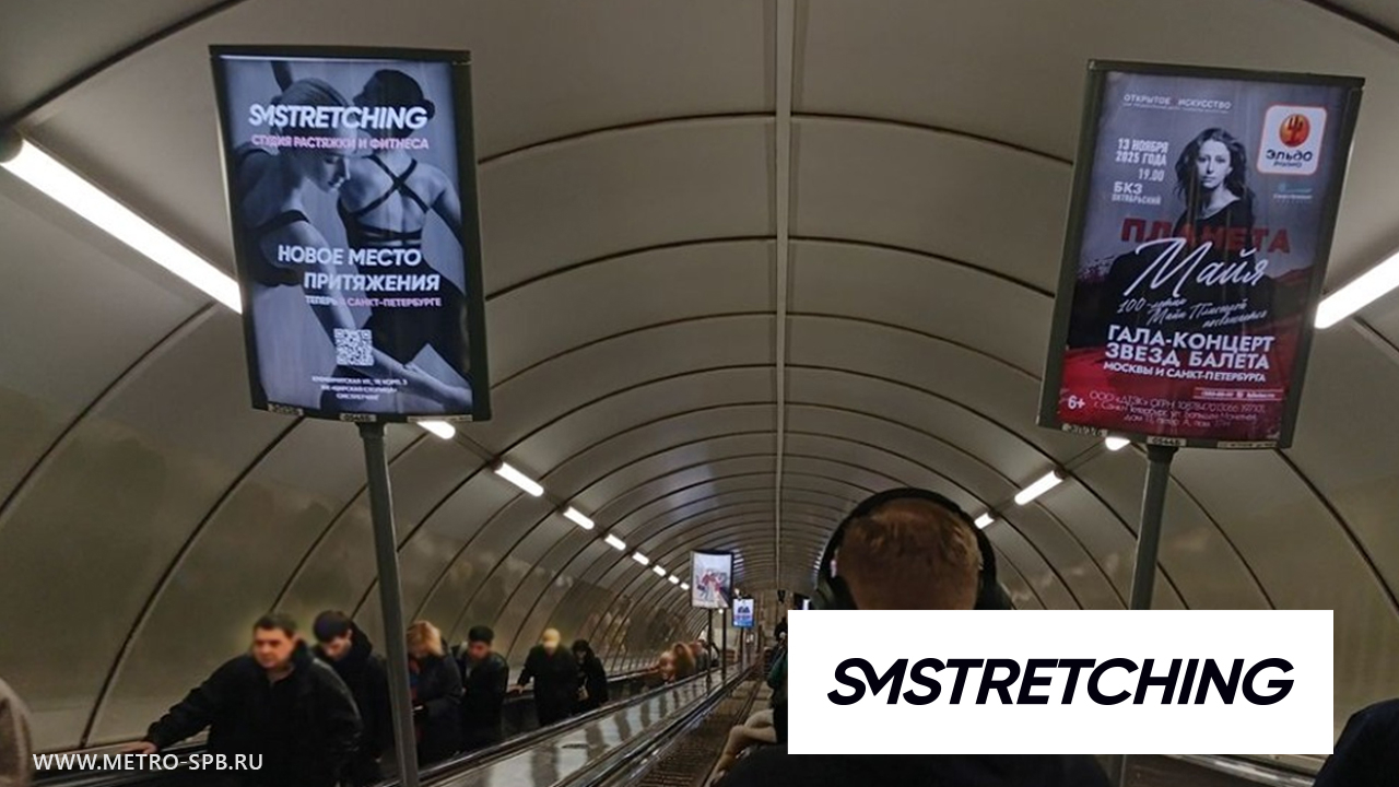 В связи с открытием в Петербурге нового филиала было выбрано размещение рекламы в метрополитене на лайтбоксах на эскалаторах0,6×0,9 м. Конструкции расположены как на спуск, так и на подъем.