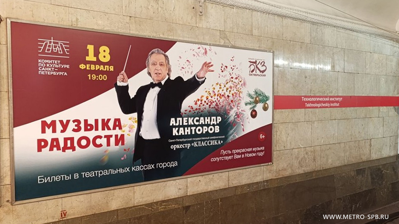 В январе на станции метро «Технологический институт-1» стартовала рекламная кампания симфонического оркестра «Классика» на путевом щите 4×2 м.