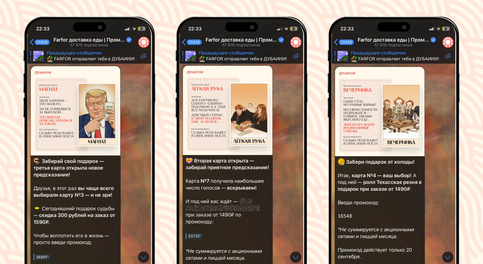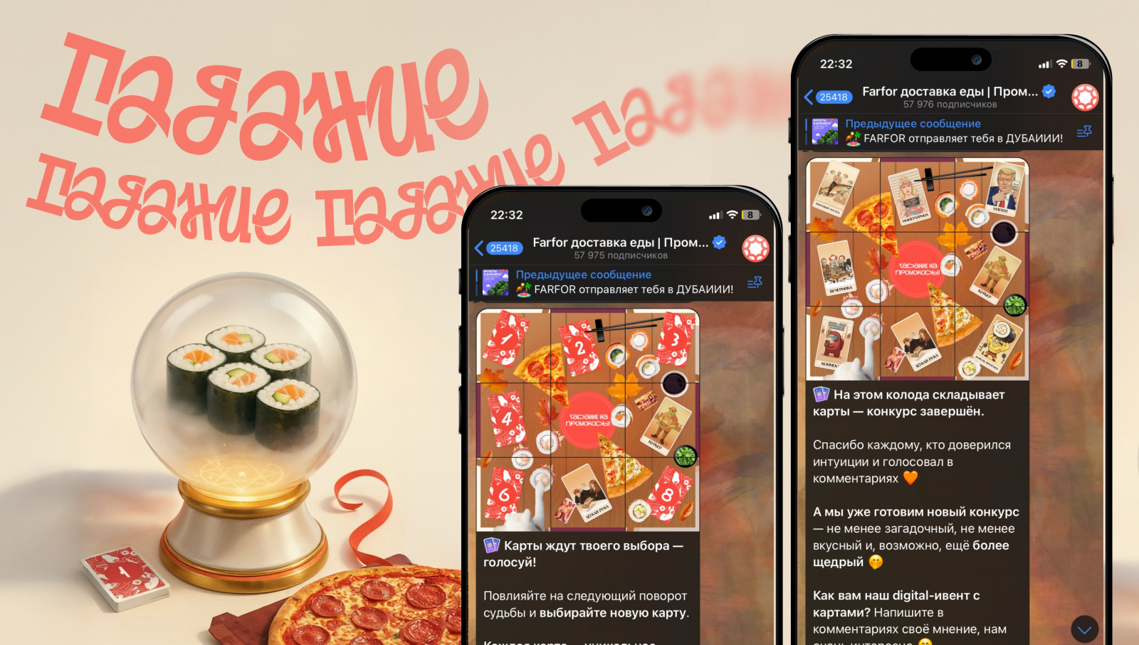 Мы решили сыграть на астрологическом тренде и интегрировали механику Таро в конкурс федеральной сети доставки еды FARFOR.