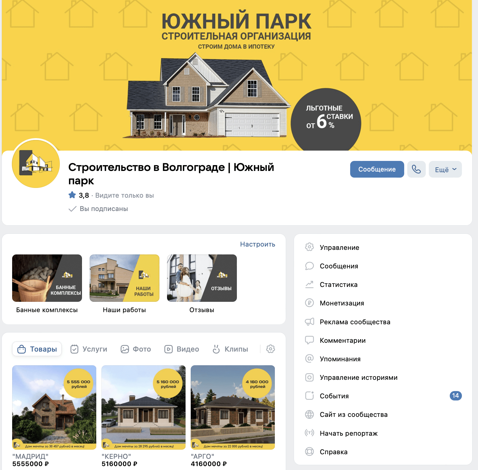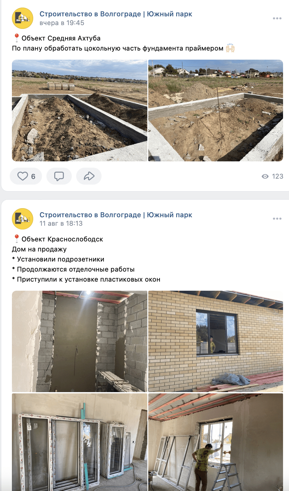 Наш клиент в плане контента молодец: стабильно ведет сообщество, делает видео-обзоры, снимается сам, отвечает на вопросы, рассказывает и показывает нюансы строительства, что безусловно вызывает доверие подписчиков.