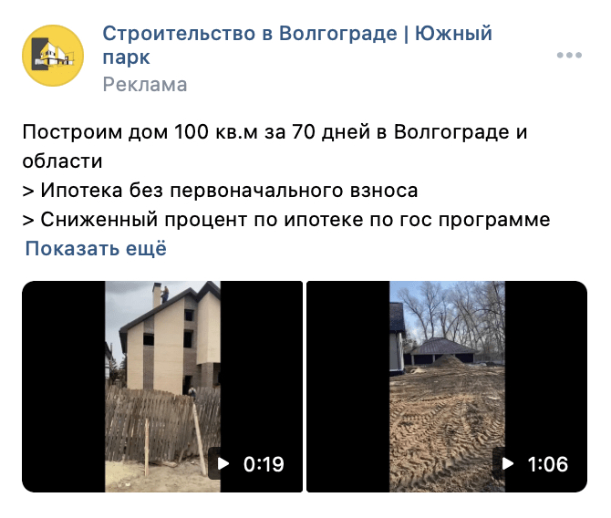 В строительстве важно показать не рендеры красивых домов, а готовые построенные дома, процесс строительства.