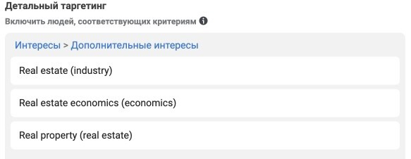 Помимо этого берем в работу косвенные интересы с различных точек зрения на продукт. Кому-то интересна недвижимость с точки зрения инвестиций, а кто-то хочет непосредственно жить в данной локации. Поэтому тестируем: