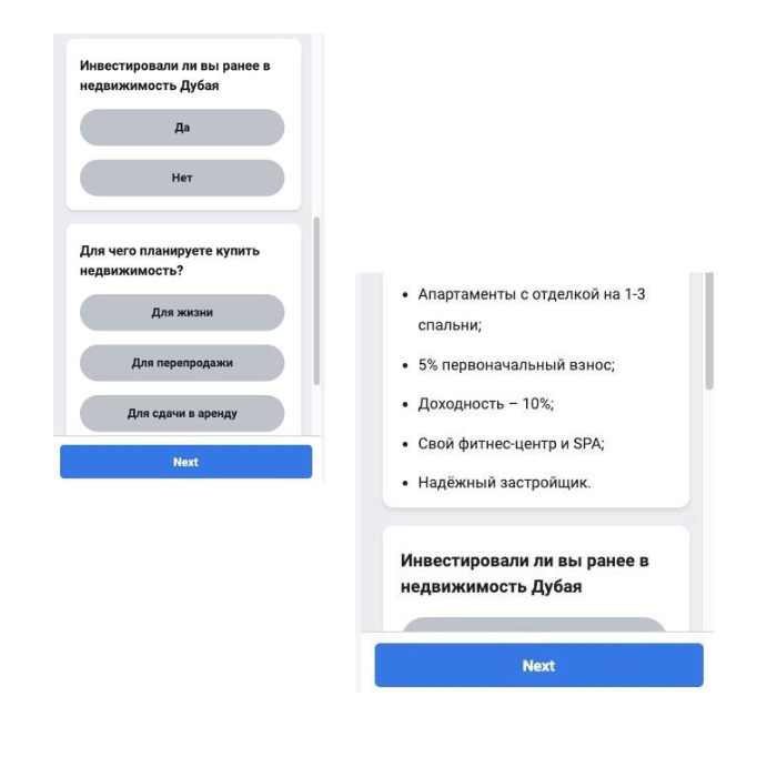 Чтобы система могла правильно оптимизироваться на нужную аудиторию мы добавили несколько квалификационных вопросов перед формой контактных данных.
