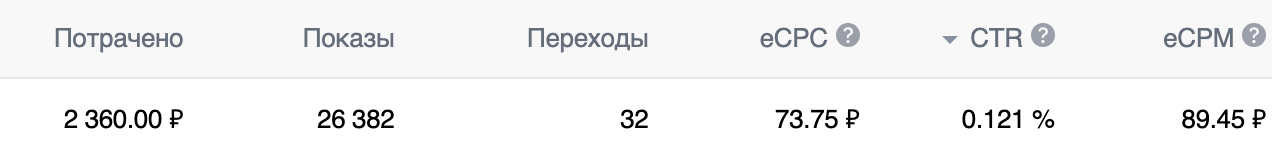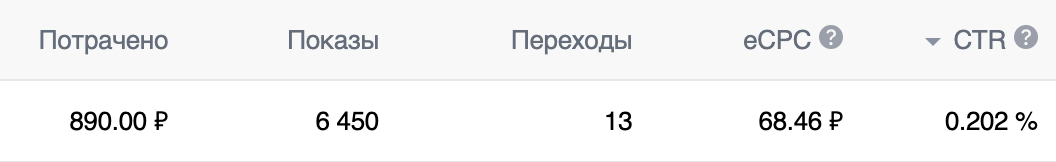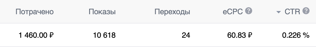 Но был один нюанс — кликов почти не было. CTR составил всего 0,12%, что критически мало для рекламы во ВКонтакте.