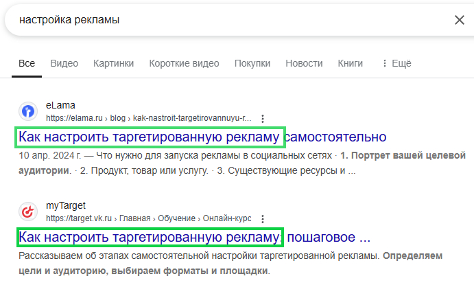 По этим заголовкам мы, например, видим, что выбивается еще один запрос: «как настроить таргетированную рекламу»: