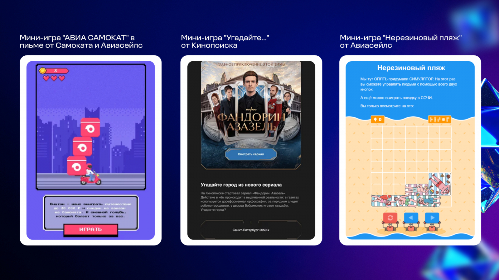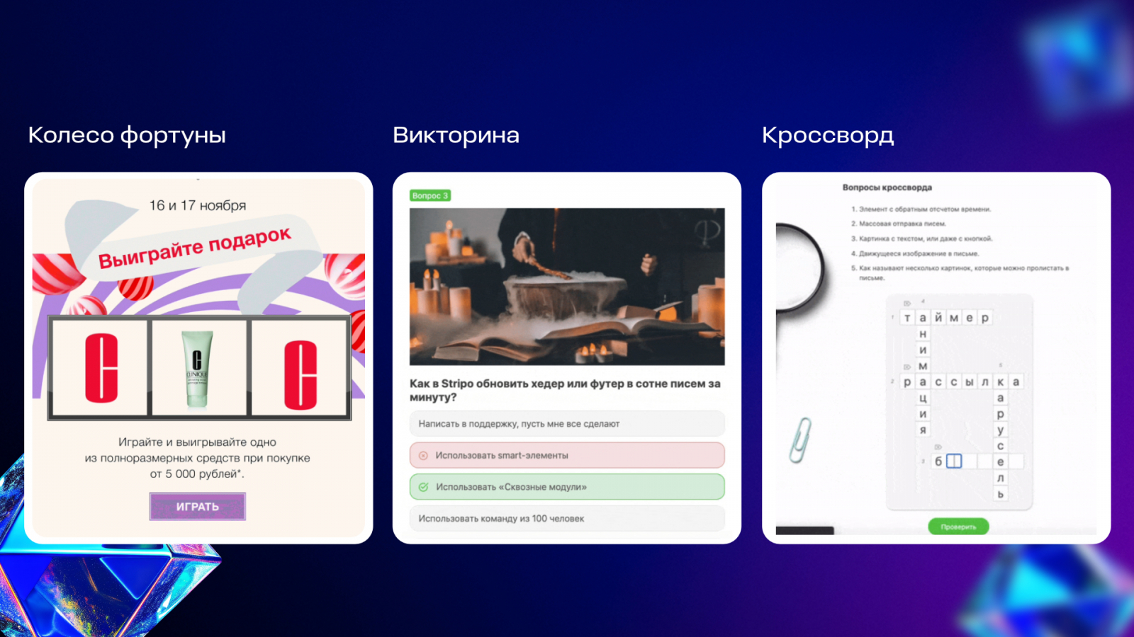 Мини-игры — это легкий интерактив прямо в теле письма. Основные форматы: