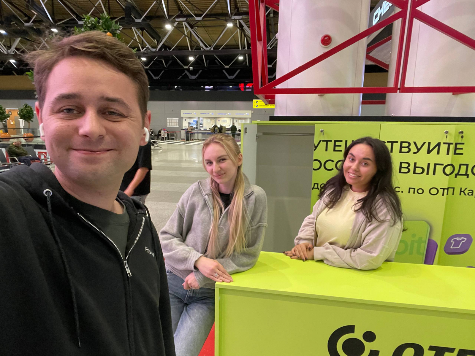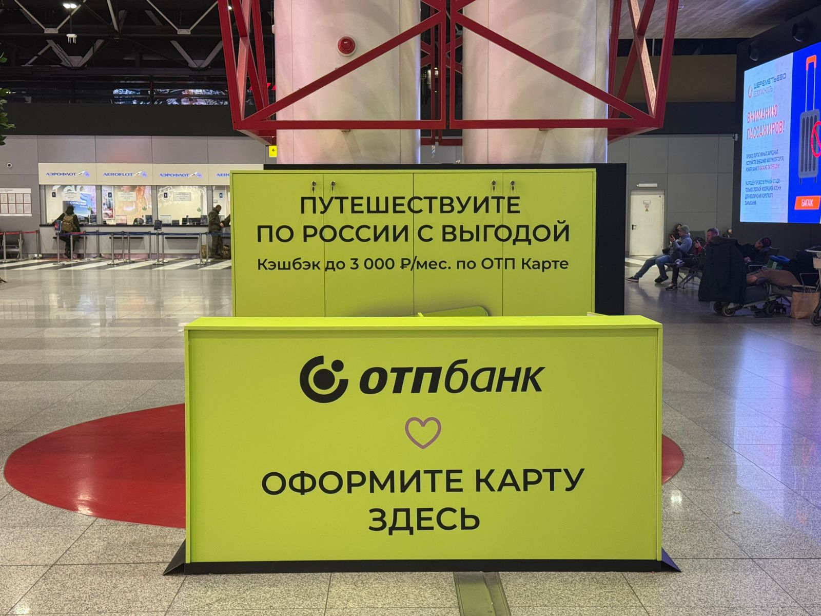 В субботу, 25 октября, мы запустили оффлайн-активацию ОТП Банка в аэропорту Шереметьево. Наша зона ответственности — концепция и дизайн стойки, производство, монтаж, выбор локаций с хорошей видимостью и трафиком, а также обучение агентов. Важно было дать пассажиру простой путь к пониманию, что именно он получает с дебетовой картой и как это отражается в его повседневной жизни.