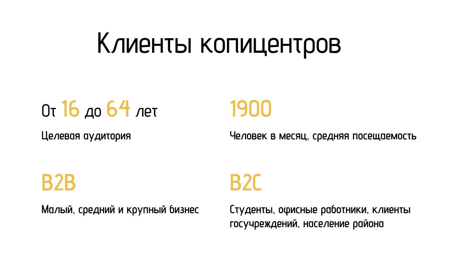 Постоянную выручку формирует локальный малый и средний бизнес. Формально заказ часто оформляет «физлицо» и платит картой, по сути это b2b с коротким циклом. Разовые розничные услуги (сканы, фото 3×4) стабилизируют поток, но именно малый и средний бизнес дает устойчивые повторы и загрузку оборудования.