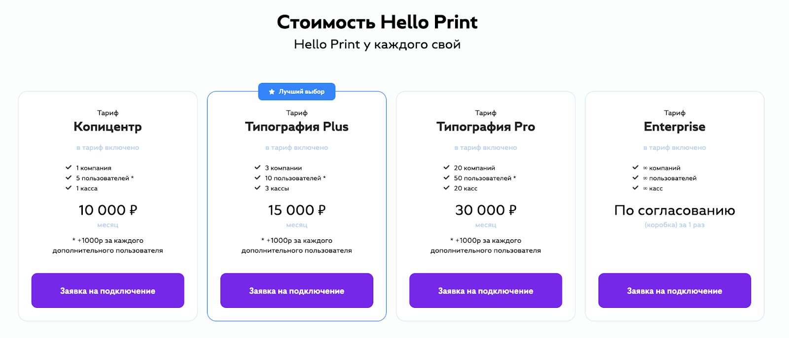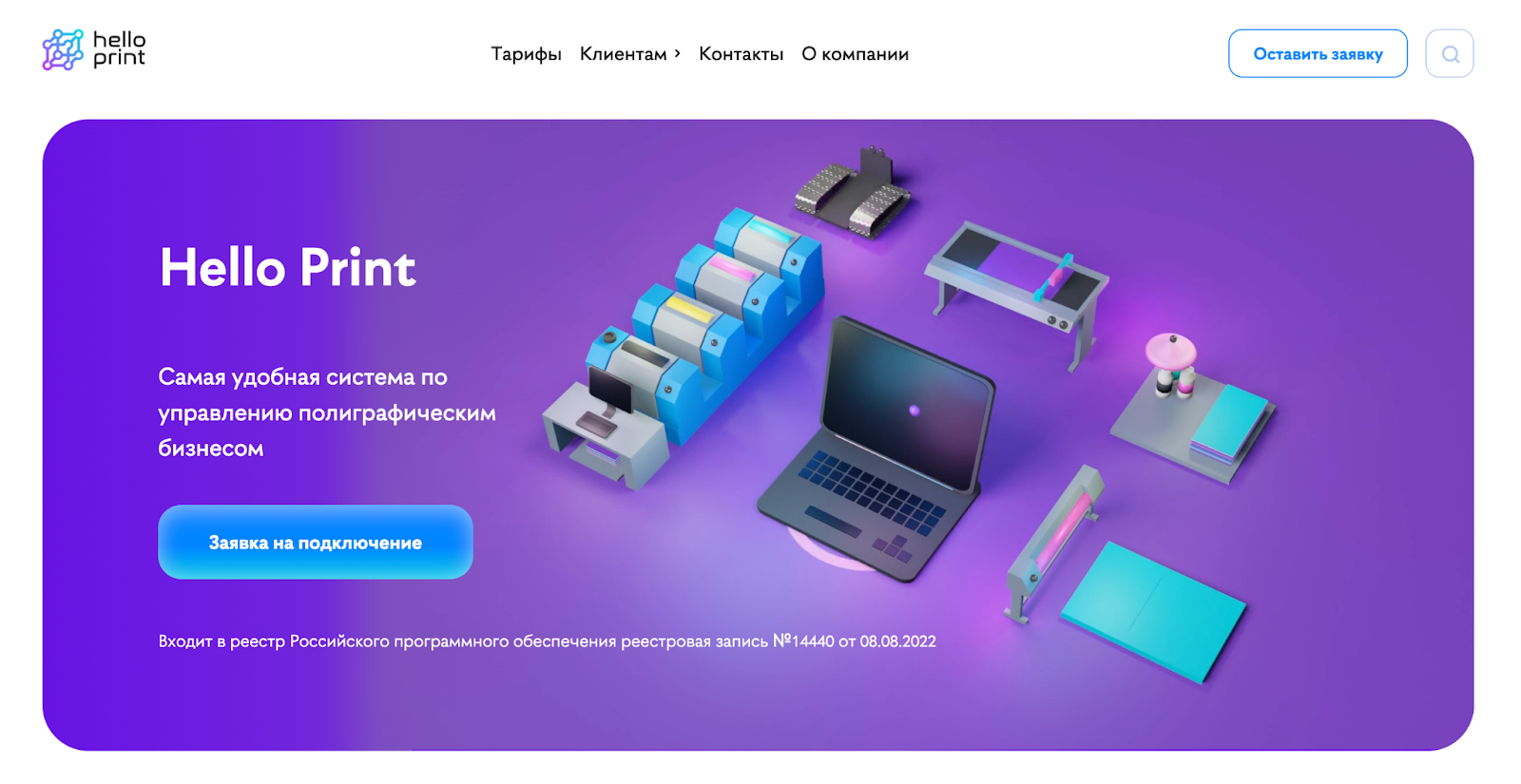 Это отдельный сайт для нашей системы, где мы рассказываем о продукте. Сегодня его можно встроить в свой полиграфический бизнес. Для этого достаточно выбрать удобный тариф: