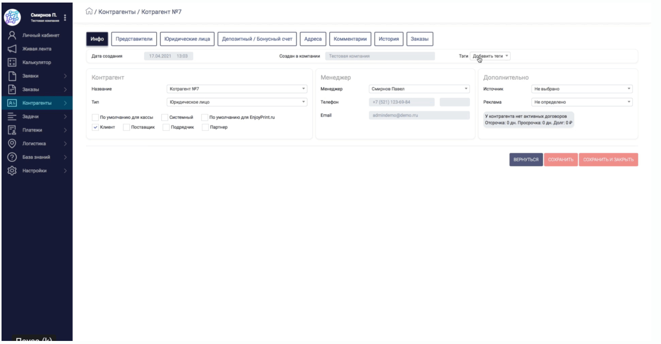 Хранит историю клиента и напоминает о предстоящих событиях. Вся история общения с клиентом хранится в одном месте. О типичных заказах HelloPrint напомнит заранее. Если типография печатает каталоги для сети магазинов раз в квартал, система предупредит: «Через две недели должен быть следующий заказ».