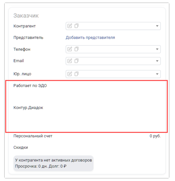 Возможна интеграция с «Контур.Диадок». Интеграция с «Контур.Диадок» позволяет обмениваться в электронном виде юридически значимыми документами между продавцом и заказчиком.
