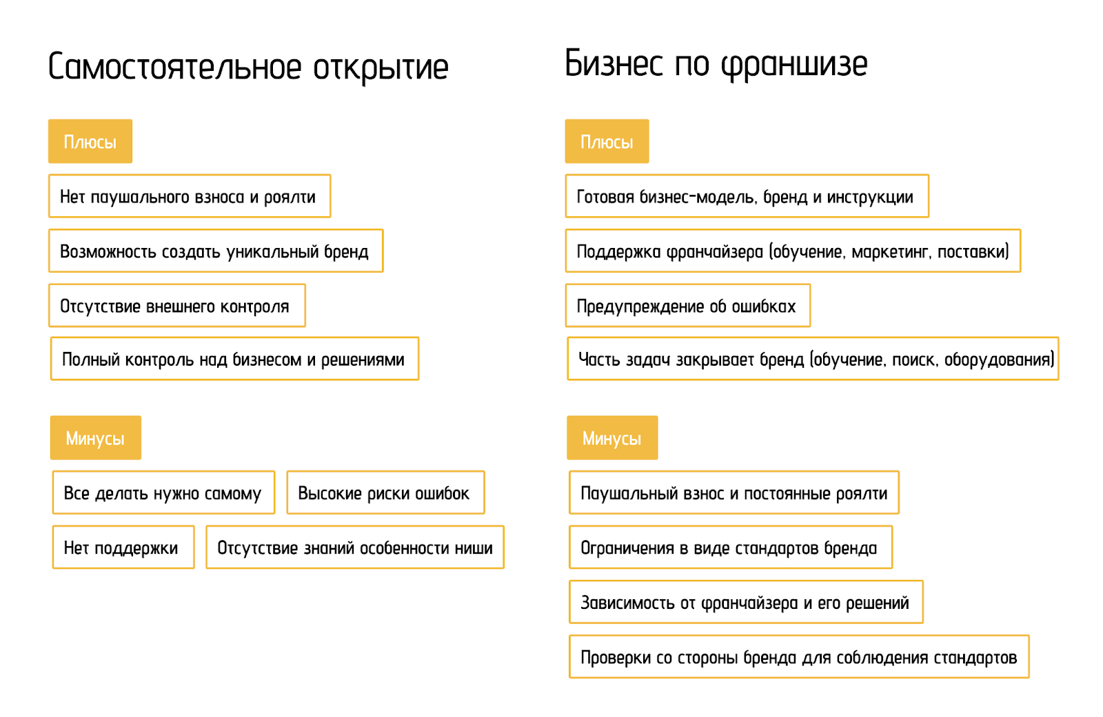 Прежде, чем решать, какой тип бизнеса вы хотите получить — нужно понимать потенциальные расходы, особенно постоянные. Они не пропадут, хотя и могут меняться.