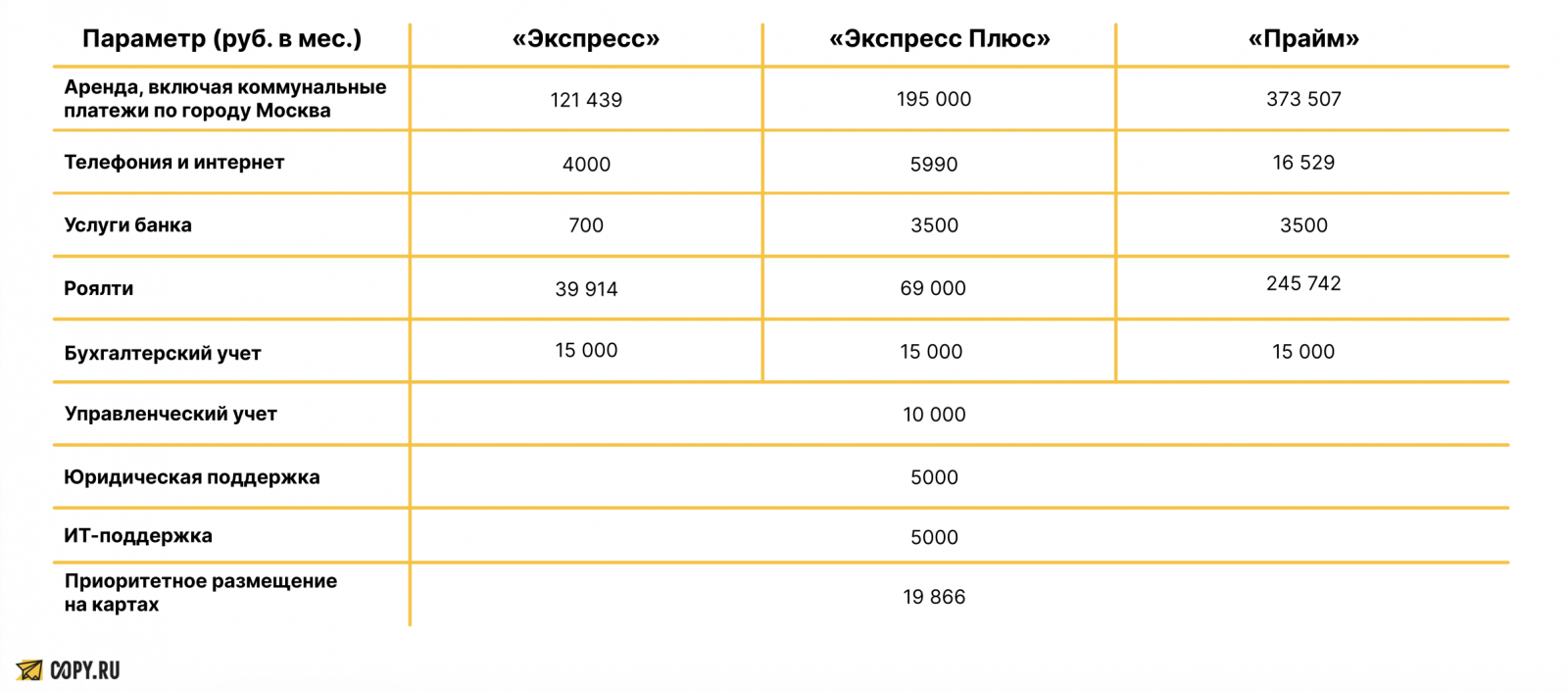 Важно: реальные показатели зависят от месяца, когда копицентр открывается.