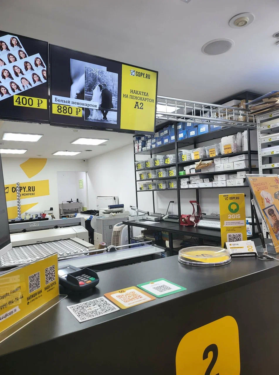 Торговый центр у метро, цокольный этаж. До Copy.ru здесь десять лет работал другой копицентр, поэтому клиентская база уже была. Формат между «Праймом» и «Экспресс+».